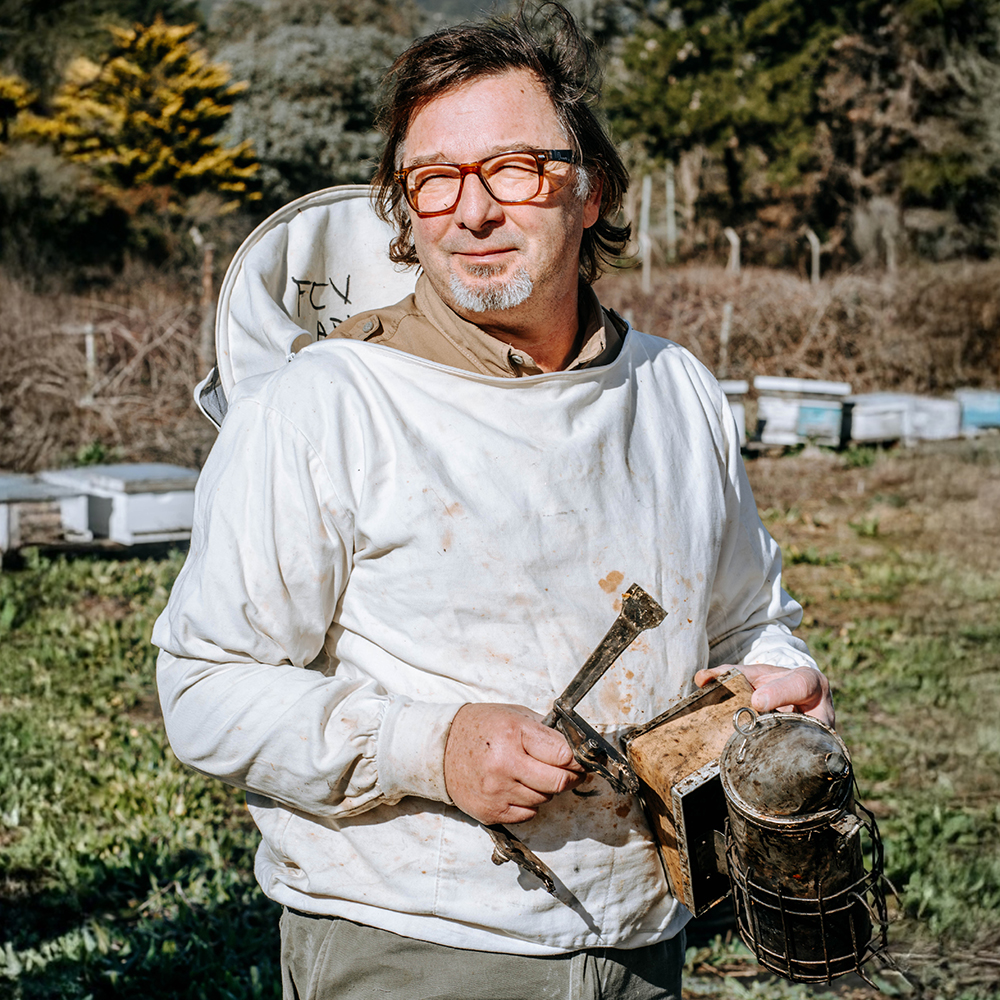 Emilio nació, se crió y vive en el campo. Se siente afortunado por su vida entre colmenas. “De muy chico descubrí las abejas, su miel ¡y también las picaduras! Con mi hermano nos subíamos a una tarima para ayudar a mi padre a echar humo, en la época de la cosecha, y después íbamos a la sala de extracción. En la ropa y en la piel nos quedaba ese perfume característico de la miel recién extractada, ¡además del pegote! Era fascinante cómo el campo representaba un motor para nuestra curiosidad y aprendizaje.” Sus palabras hablan de tiempos color ámbar: la felicidad de aprender jugando, divirtiéndose, en familia. Sólo bastaba observar y probar hacer.